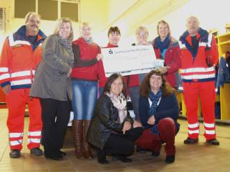 Sichtlich überrascht nahm eine Abordung der Feuerwehrsanitäter diese Zuwendung, während der Jubiläumsveranstaltung im Schützensaal, in Empfang.